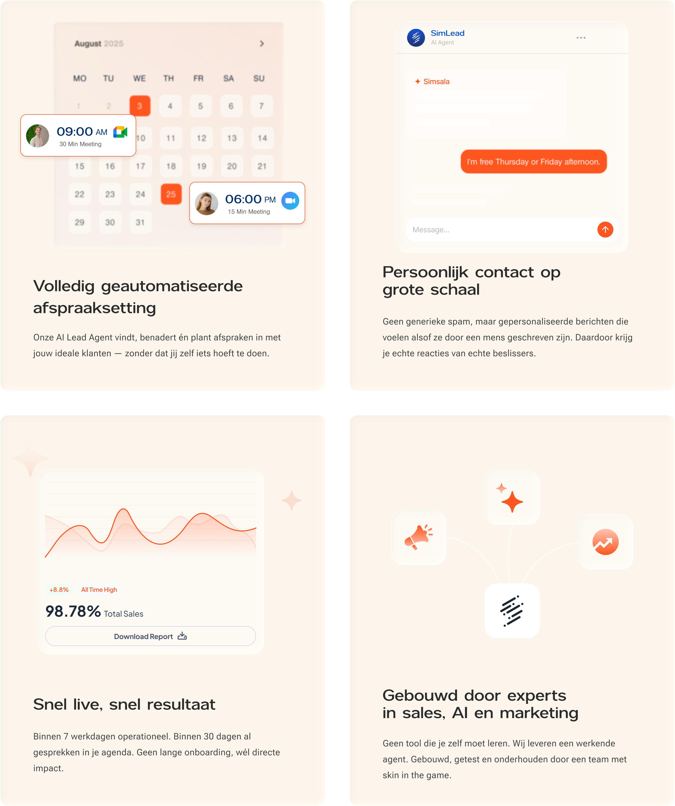 Ontdek SimLead: de AI Lead Agent die jouw ideale klant vindt, persoonlijk benadert en meteen een afspraak voor je inplant.