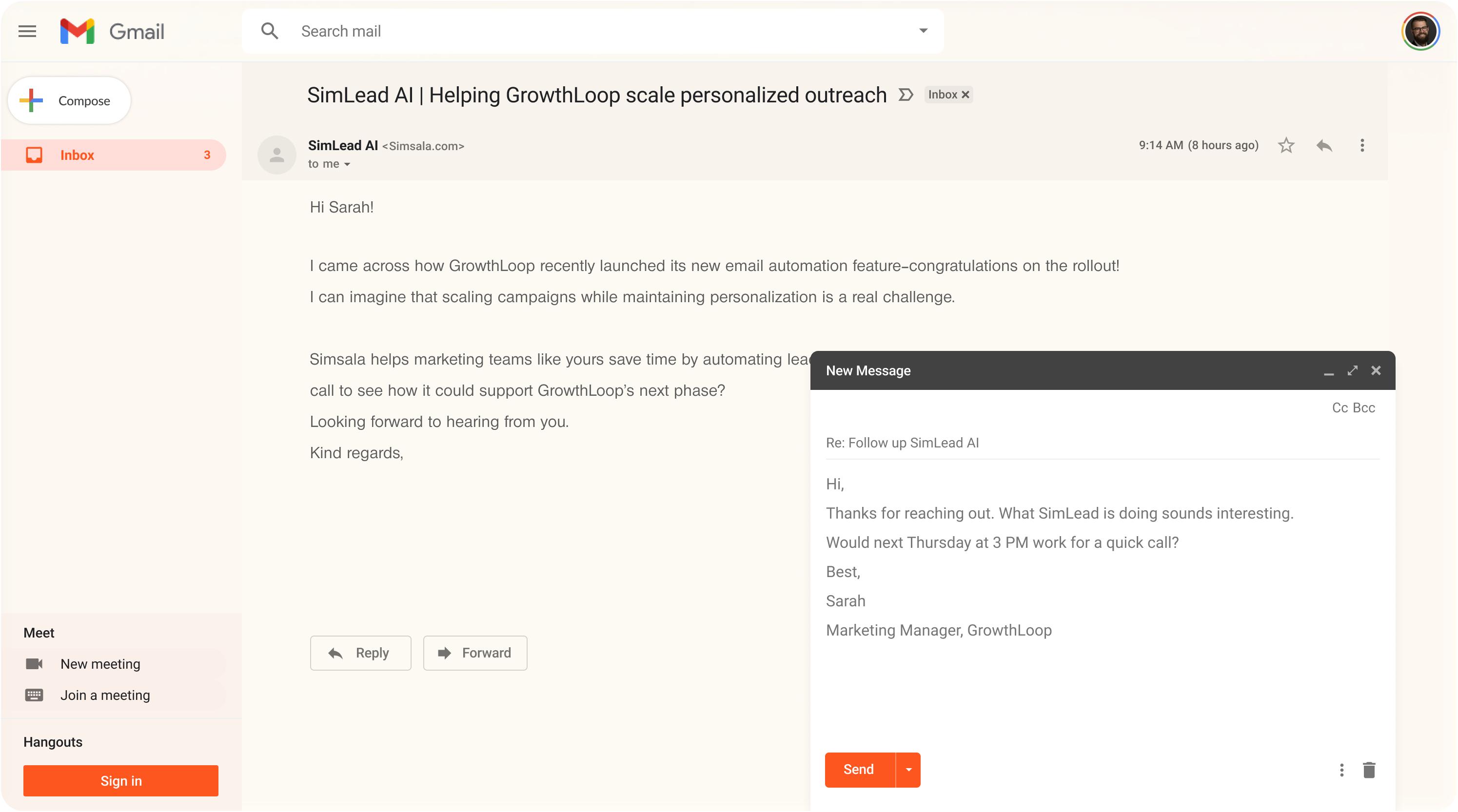 Zodra een lead interesse toont, plant SimLead automatisch een afspraak in jouw agenda. Jij ontvangt alleen de bevestiging.